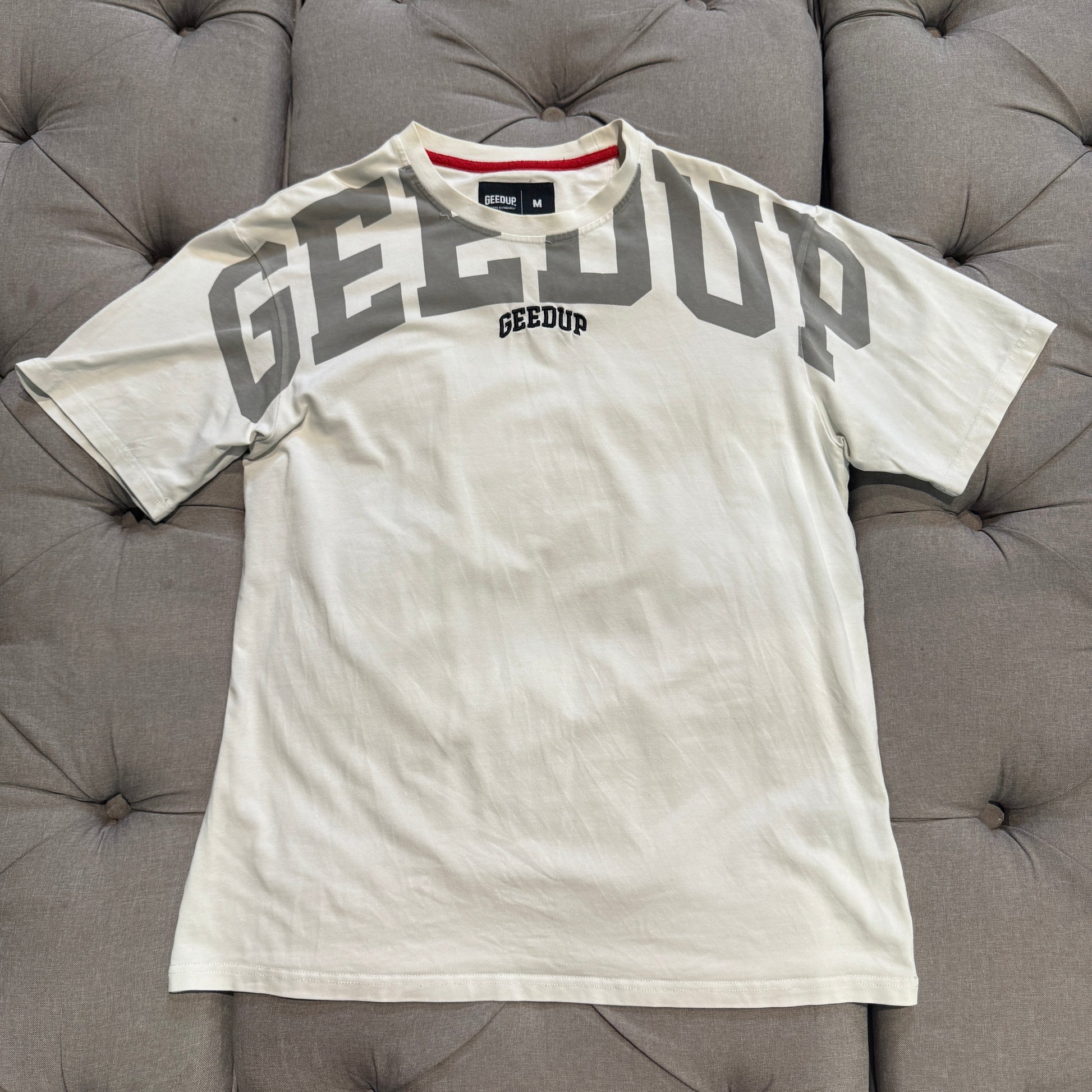 Geedup Shoulder Print Embroidered Logo T-Shirt 'White' (Second hand)