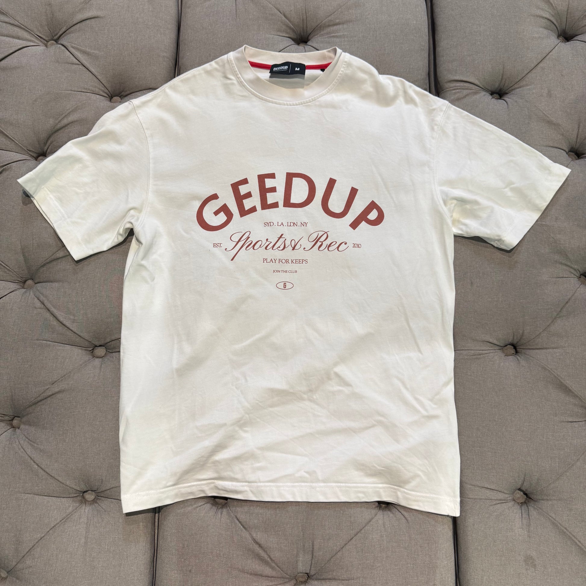 Geedup Sports Rec T-shirt 'White Maroon' (Second hand)
